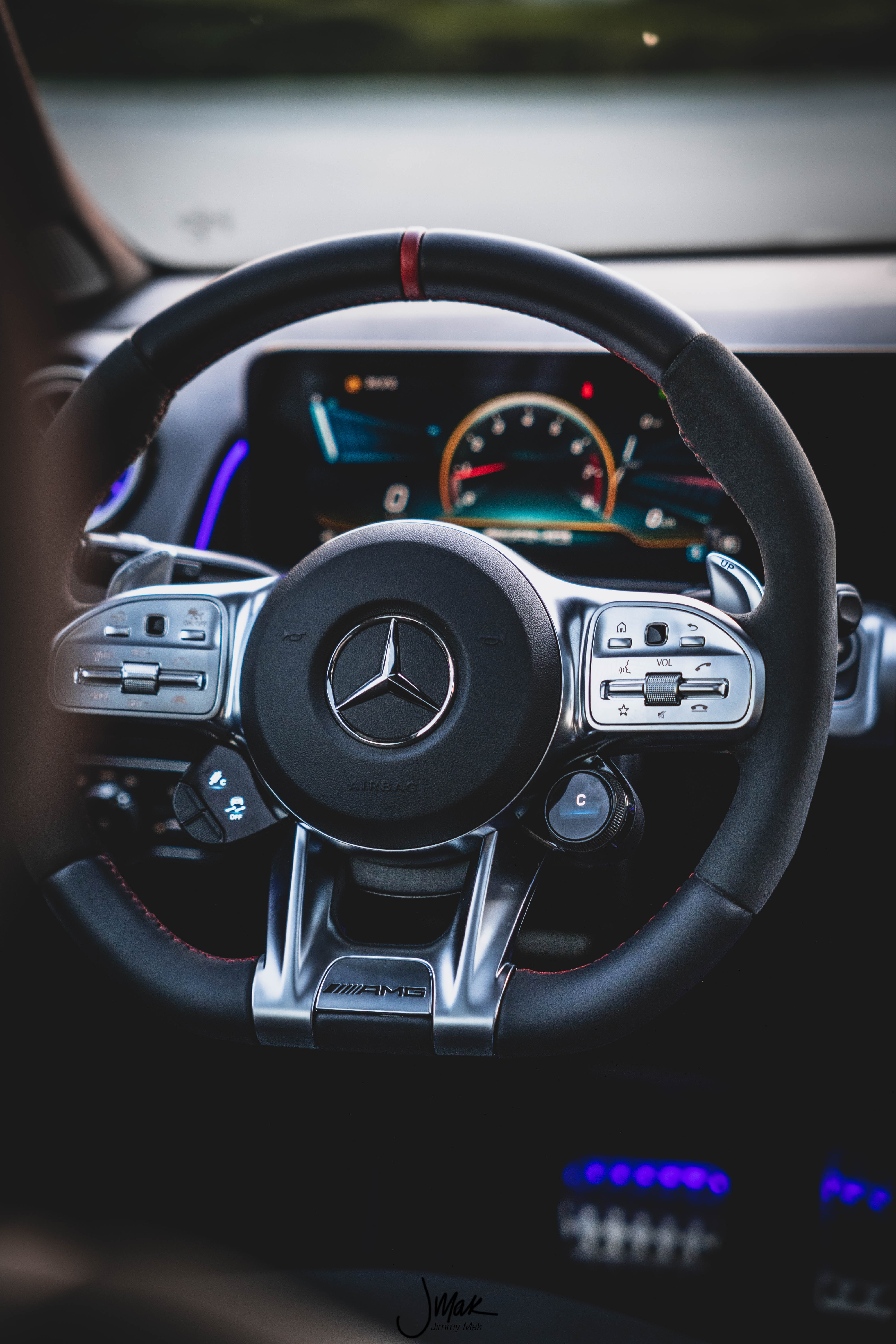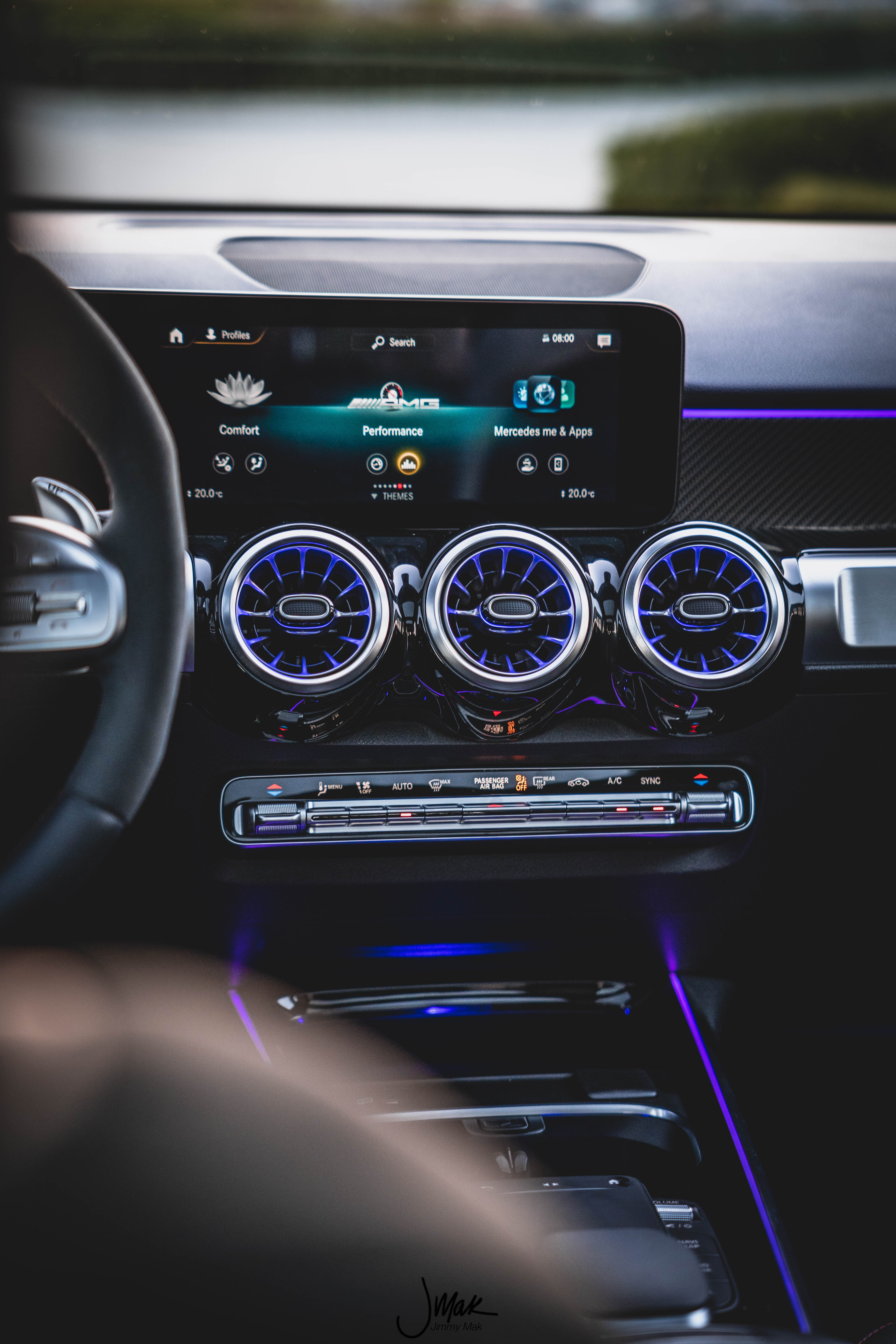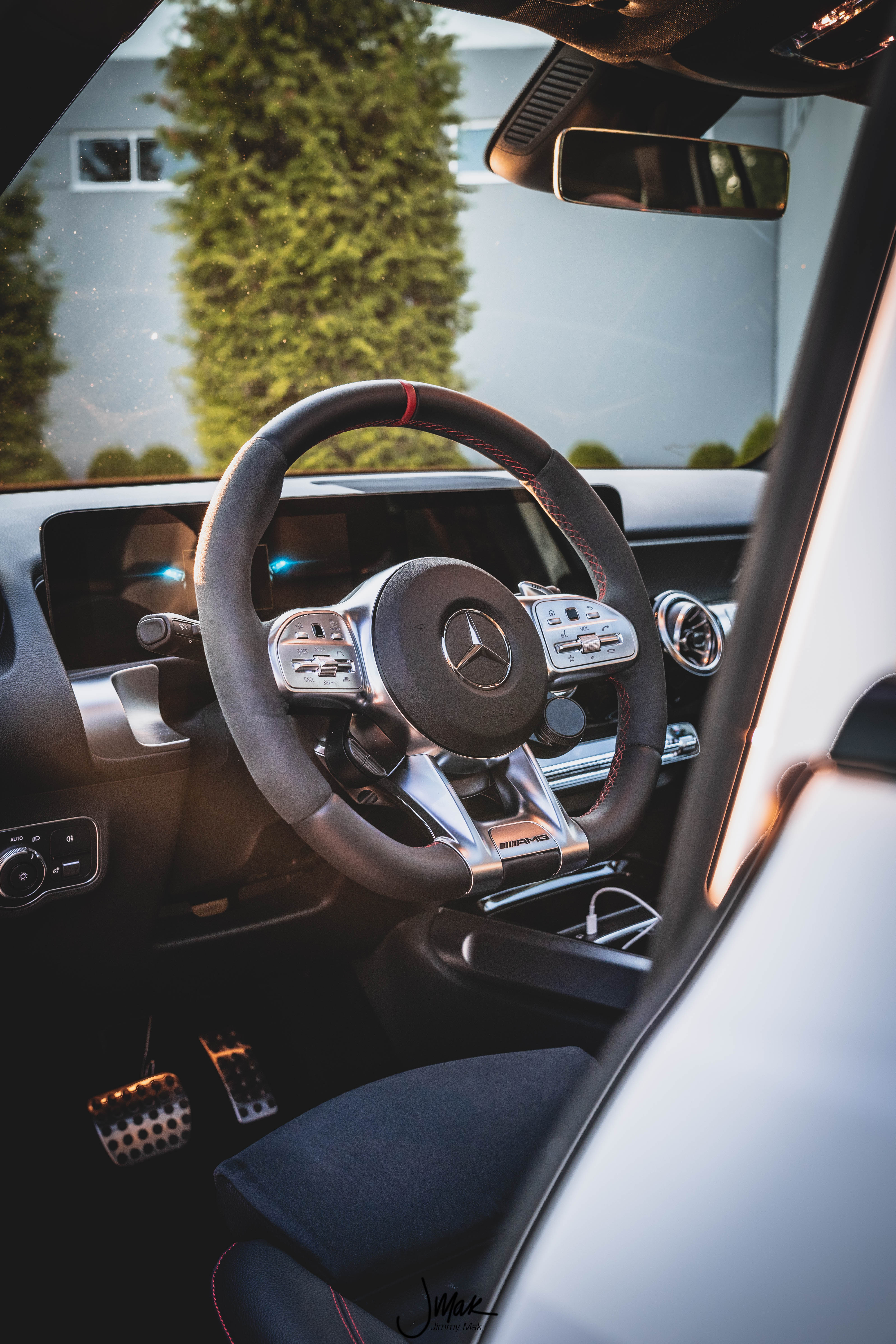 On the inside the GLB has the typical Mercedes layout. Dual displays for your cluster and infotainment. Both work well and shows you all the info you really need. The steering wheel is wrapped in Alcantara and leather and even has a drive mode selector. Seats, could be a bit better. They have the support one would look for but they look rather plain, it doesn’t scream sporty AMG but in an SUV I think that’s fine.